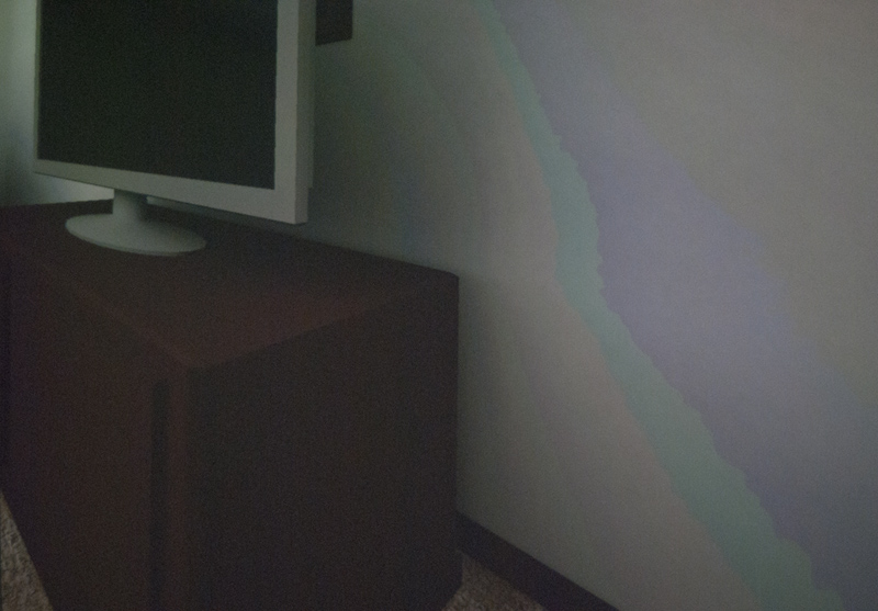 We have begun to use light-baking techniques in Autodesk 3ds Max 2011 to enhance the realism of our scenes but have recently run into a problem. There are rings of different colors on flat surfaces that look similar to oil when we put on 3D glasses. The color distortion is not visible with the glasses off. The glasses are shutter glasses, alternating on and off for each eye to produce the 3D effect. We have had Mechdyne, the company that manufactured our CAVE out to look at the issue and they believe that it is a software issue, and not one inherent in the hardware (projectors/mirrors/screens). Again, this issue only happens with light-baked models, viewing the scene with the 3D glasses on. I have attached an image that demonstrates the problem. This was taken using a cell phone camera, with the 3D glasses held over the lens. Ignore the vertical shaded highlight lines that are an effect of holding the glasses over the lens. In this image, the problem is the rainbow-like effect in the upper center of the picture (the wall should be all one color). I will try to get a better image with a better camera tomorrow. Any help would be greatly appreciated. Thank you. |