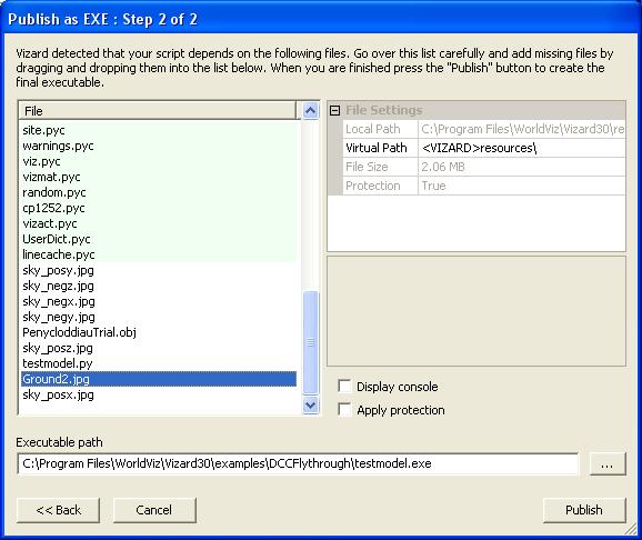 Hi - the model file (PenycloddiaTrial.obj) is in the Vizard Resources folder, along with the texture - see attached files showing virtual path for both. The Vizard script is in a subdirectory of the Vizard examples folder. On previous occasions this always seemed to work fine and it still does, with the exception of the executable.