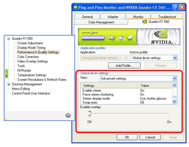 I was wondering if someone has used the Emagin with Quadro FX 4600 and managed to get stereoscopic output i.e. 3D. Emagin works fine with my laptop with Quadro FX 350M however I couldn’t manage to make it work properly with the aforementioned card.