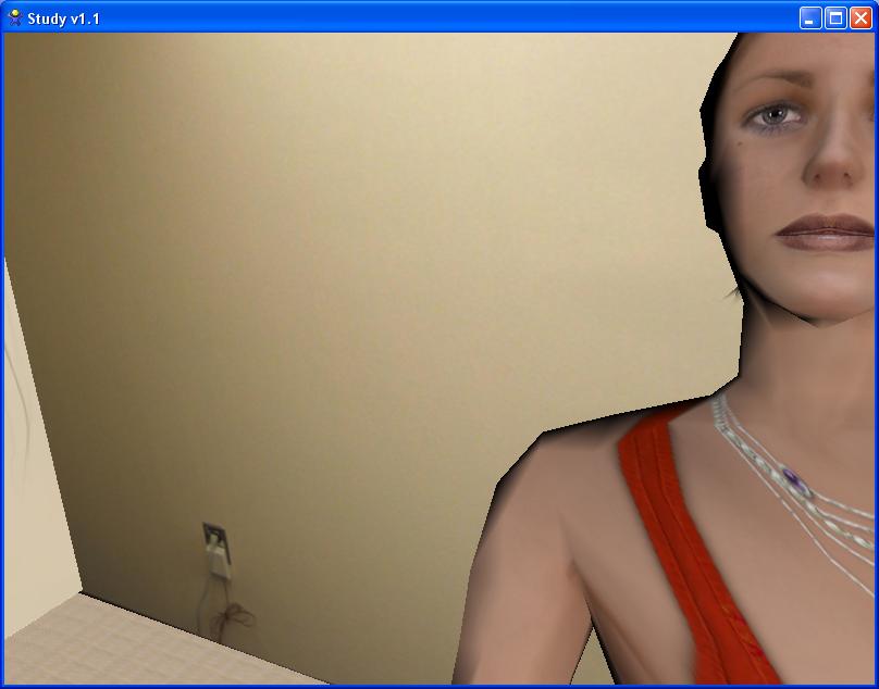 When I changed the specular color to black and re-exported all the Cal3D files, Vizard rendered the avatar as a completely black object: Then, I tried leaving the specular color white and just adjusting the specular level, upping it to 25. After re-exporting the Cal3D files, I ended up with a slightly shinier avatar, but the black spots still appeared in Vizard: I also noticed a file named *_spec.tga which seemed to be a specular bitmap. Unfortunately, when I tried mapping this to the avatar's specular highlights, I still ended up with spots appearing around the edges: I notice that the black spots are much more pronounced when the avatar is near the edge of my viewpoint. It seems, also, that the dark spots don't look any different regardless of specular settings (they look exactly the same even when I map the body texture to the specular highlights). Could this issue actually be due to Vizard's rendering? And if so, is there a way I can disable the shadow feature? |