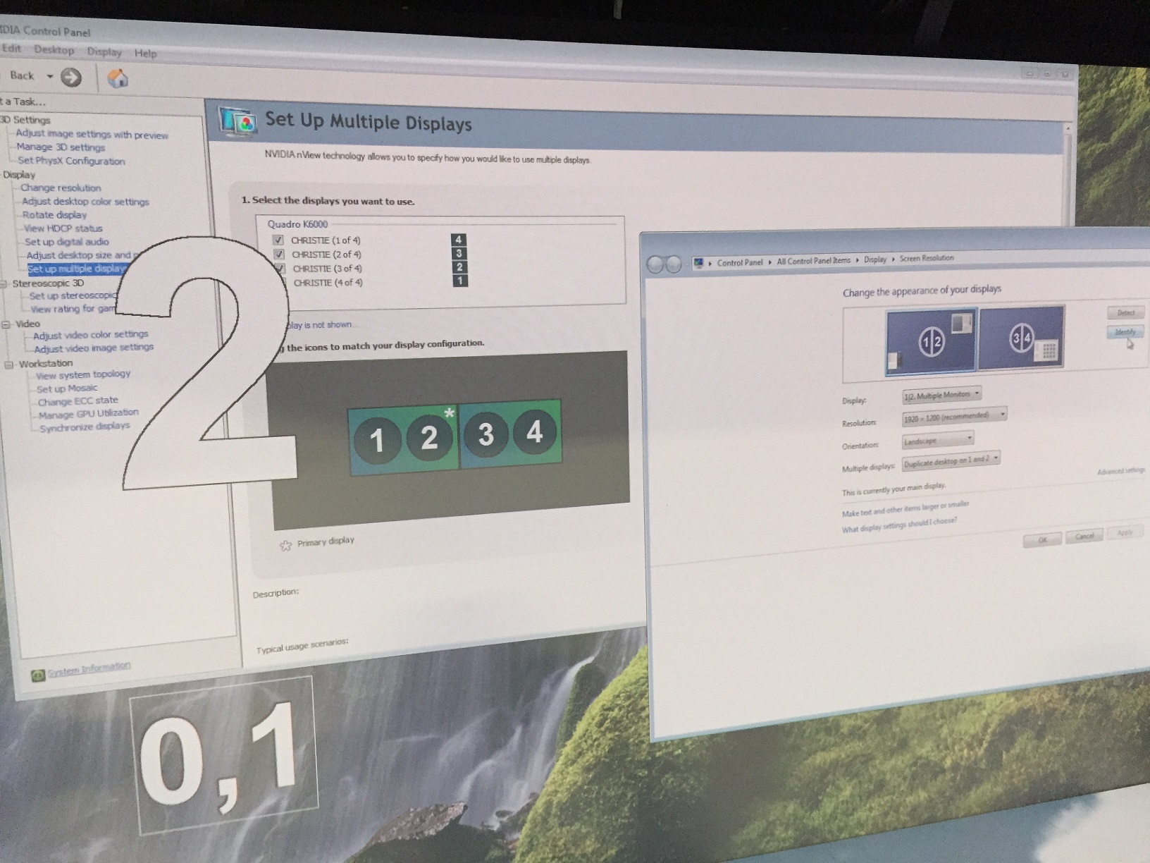 Nvidia Graphic Card Floor Projector(graphic ports 1&2 clone mode) and Left Wall Projector(graphic ports 3&4 clone mode)