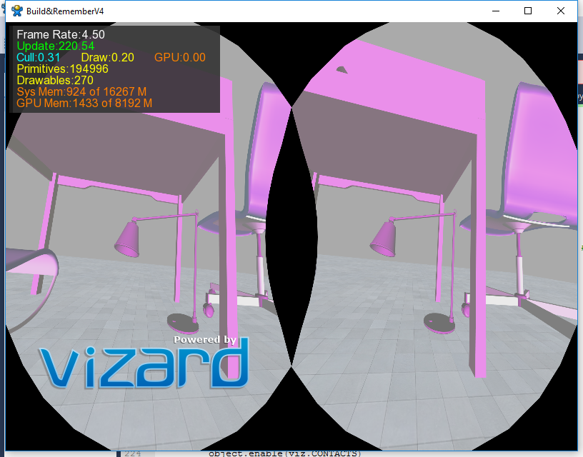 I am using a HTC Vive and a free trial version of Vizard. I am running a GTX 1070.