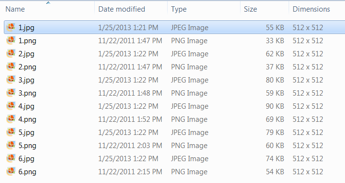 I just tried downloading the forum images and I get back the 512x512 for some reason... However I tried changing the last one to half the size to see what error I get... and it isn't a dimension error I seem to be getting on the other images.