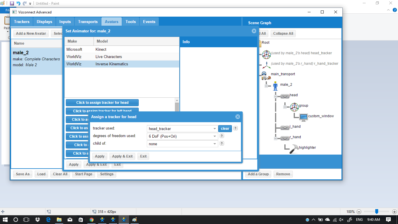 I tried your code from the POST and the same i have to implement using Vizconnect but failed to do and the viewpoint and avatar male_2 rotates randomly:-
