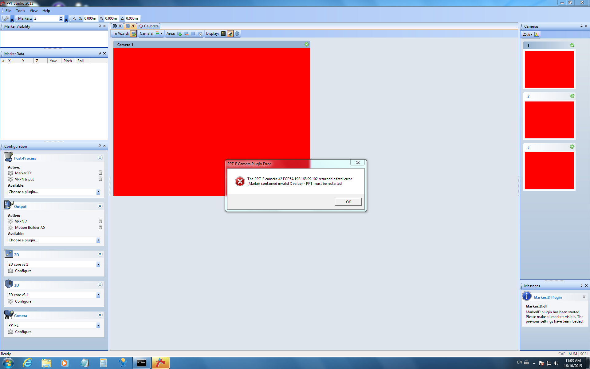 I was trying to adjust the thresholds for one of the cameras, the a fatal error was prompted. A screenshot is attached. I tried to restart the PPT studio and also restart my computer but it didn't help. I am wondering how to solve the problem? Thanks. |