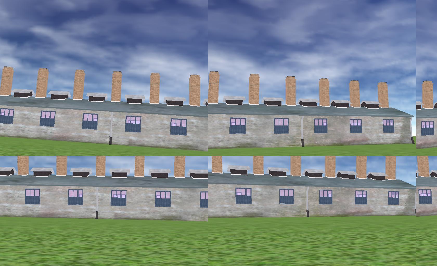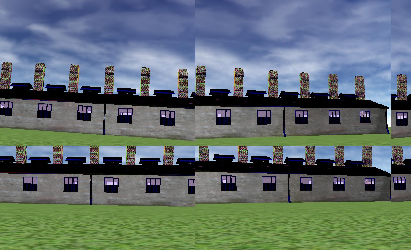 I am using Vizard 4 beta2. I have a Sensics xSight HMD with 6 panels on each eye. I export a 3D building model from 3ds max 9.0 to a .ive file. The model contains materials with textures. It looks fine in the 3ds max. It also looks fine if it is shown on the LCD monitor (as with viz.go() command). The problem is when I looked through the xSight HMD the texture looks really weird (see attached screen-shot, left).