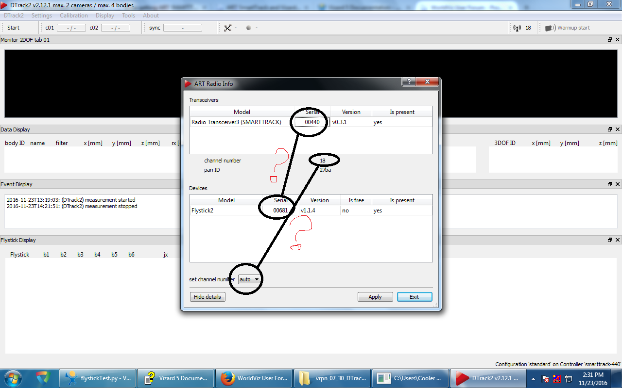 1)Is the channel number or the serial number of FlyStick2 and the reciever in ARTSmartTrack is restricting Vizard to get data from Dtrack2 via VRPN?