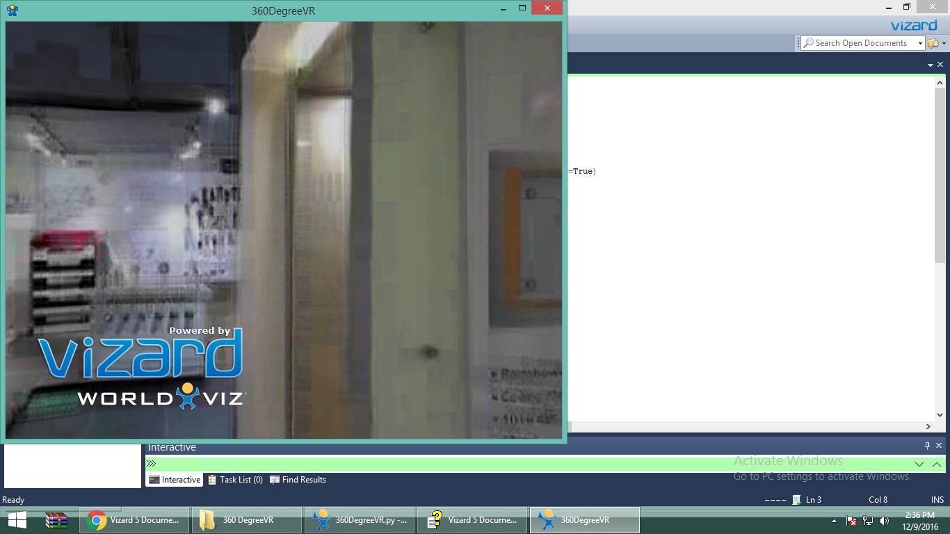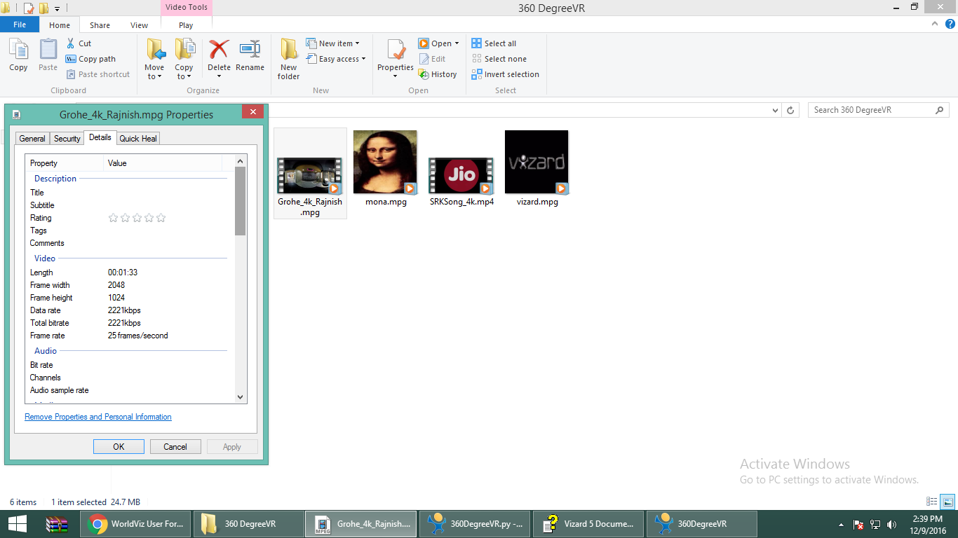 PFA of the Vizard Render View when 360 video is played,the details of the video and the Video Played in the Windows media player .